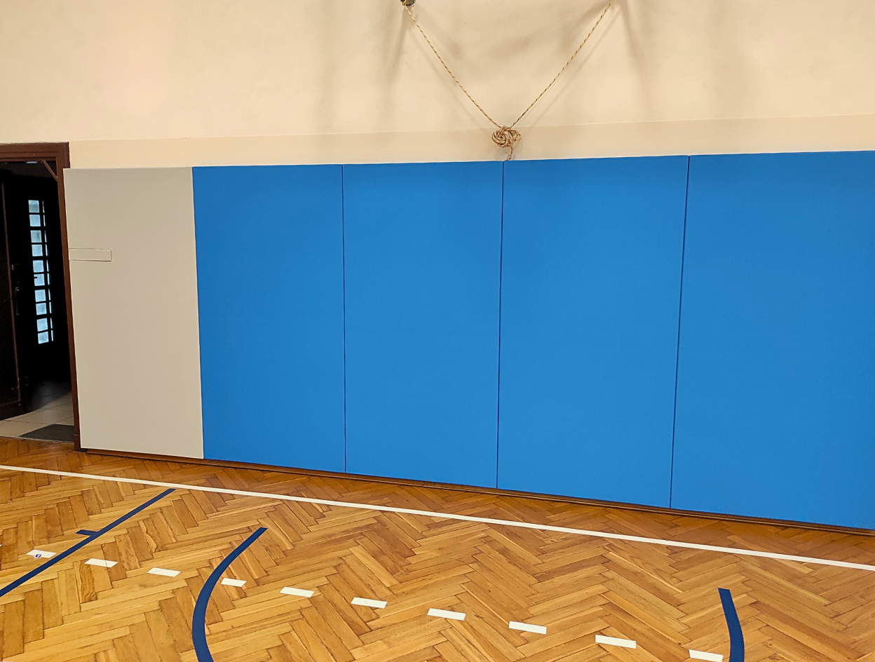 – zastosowanie osłon ściennych ogranicza ryzyko urazów przy kontakcie z krawędziami ścian, narożnikami, filarami oraz innymi stałymi elementami wyposażenia sali