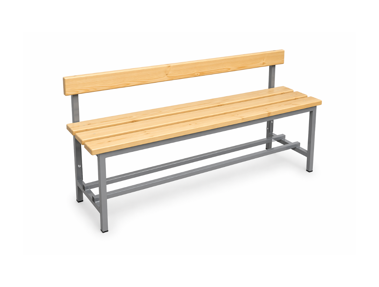 Ławka szatniowa/korytarzowa z oparciem i z półką na buty to praktyczne i trwałe wyposażenie do szatni, korytarzy, przebieralni oraz pomieszczeń socjalnych.